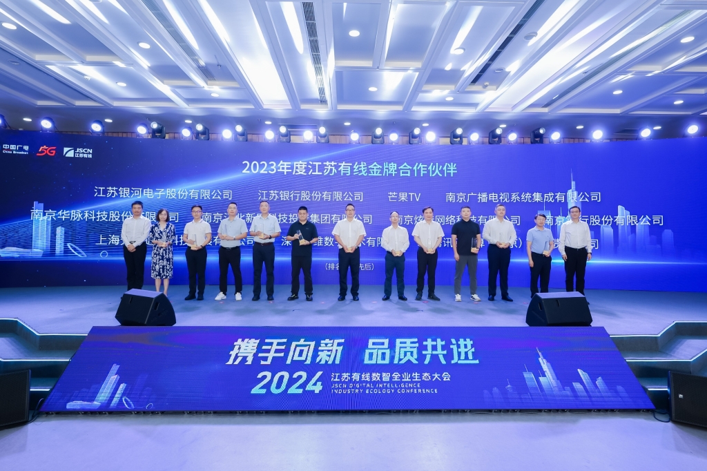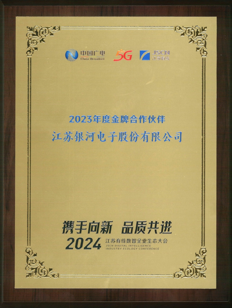 8月21日下午,以“攜手向‘新’ 品‘質(zhì)’共進”為主題的2024江蘇有線數(shù)智全業(yè)生態(tài)大會在寧舉辦,銀河電子作為我國數(shù)字電視智能終端設備專業(yè)提供商受邀參會。大會期間舉行了“2023年度金牌合作伙伴”頒獎儀式,銀河電子憑借優(yōu)質(zhì)的服務、可靠的品質(zhì)、及時的交付能力,被授予2023年度江蘇有線金牌合作伙伴。